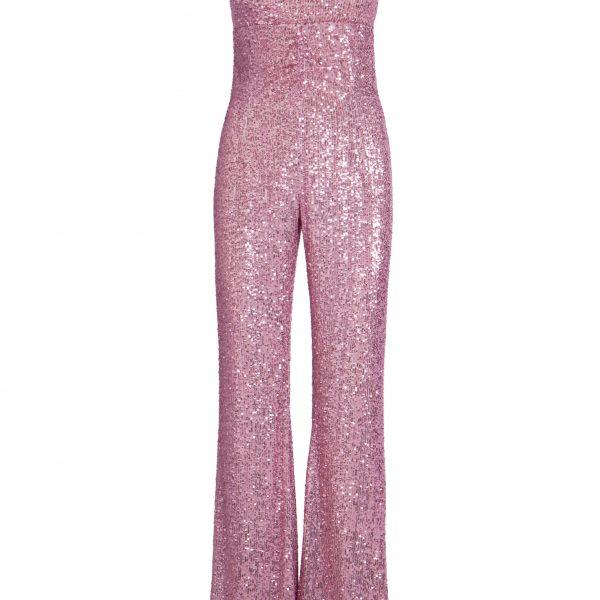 Pink strapless sequin jumpsuit