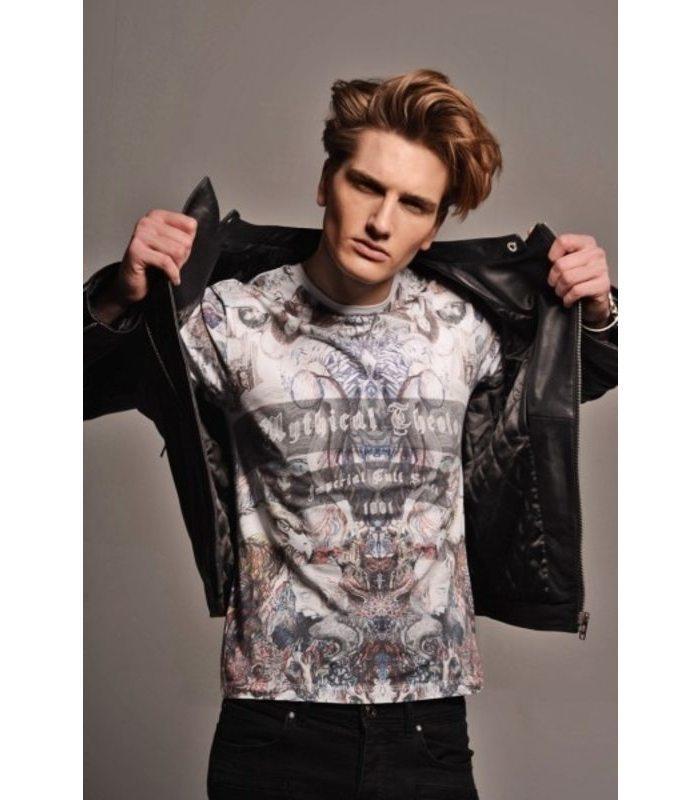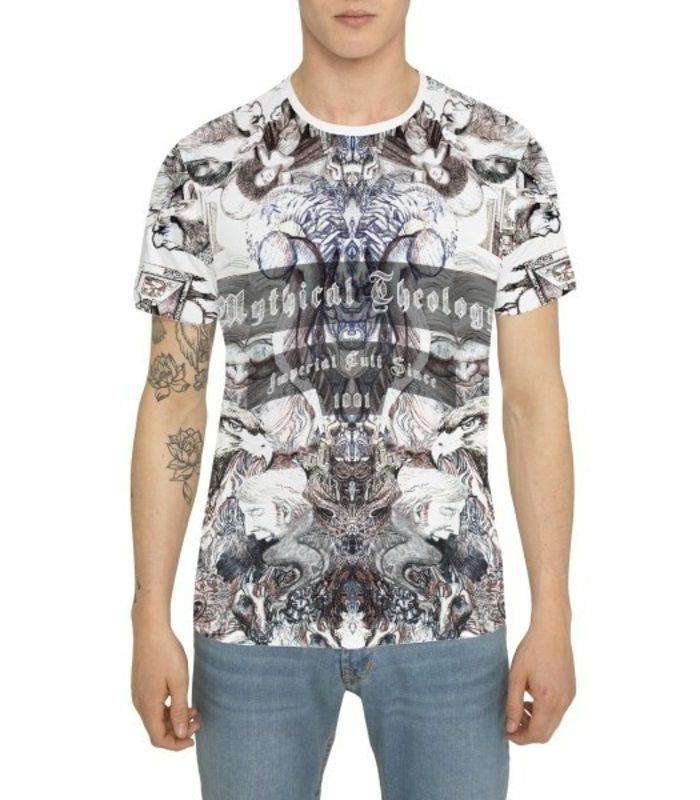 RADDAR’s white shirt is emblazoned with vibrant tattoo motifs – a key theme that runs through the SS17 collection. Designed in the brand’s cool rock signature, RADDAR7s T-shirt statement prints inspired by urban street style. The King Eagle t-shirt is a compelling, provocative body of work, produced entirely in ink, which entices the viewer into scenes that draw from Breugel, Dante and Esch. There are images here of eagles and haloed angels. It has been made in UK from cotton-jersey and cut for a regular fit. Wear yours with slim black jeans and a leather jacket.
