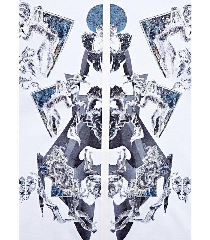 The Superstitious tee is for those who would rather stay in control of their own lives, and not surrender themselves to the whims of black cats or cracks in pavements. While the images appear random, they engender a feeling. Is that feeling one of optimism or pessimism? It’s up to whomever is looking at it.