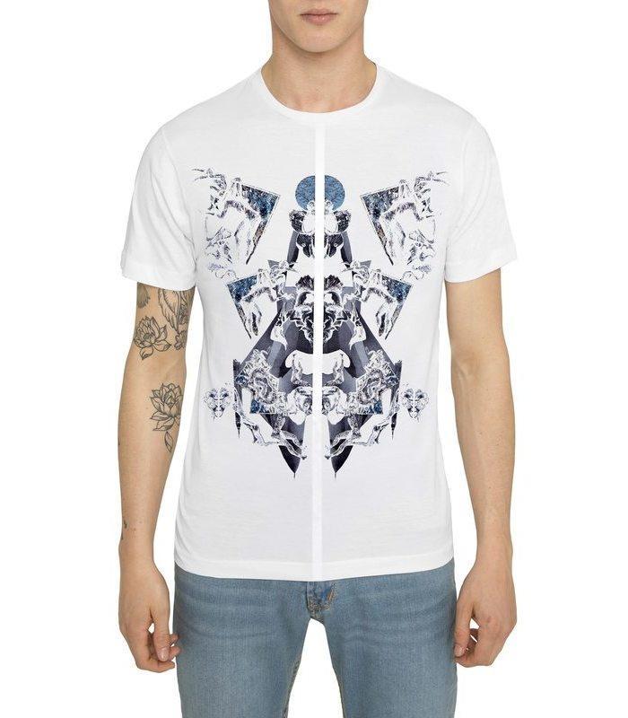 This designer menÍs tee is a swirling vortex of graphic images on premium quality cotton. Utilising rock style concepts, the Superstitious rock tee is a perfect gift for men who like that cool urban rock look and rebel style clothing. A bold and uncompromising piece of wearable art. The contemporary hand sketched print on the front incorporates original artwork and with unique printing techniques. Work this premium quality cotton-jersey menÍs tees into your casual wardrobe with a leather jacket and jeans, and wear it to give weekend looks a dose of the brand’s rebellious attitude.