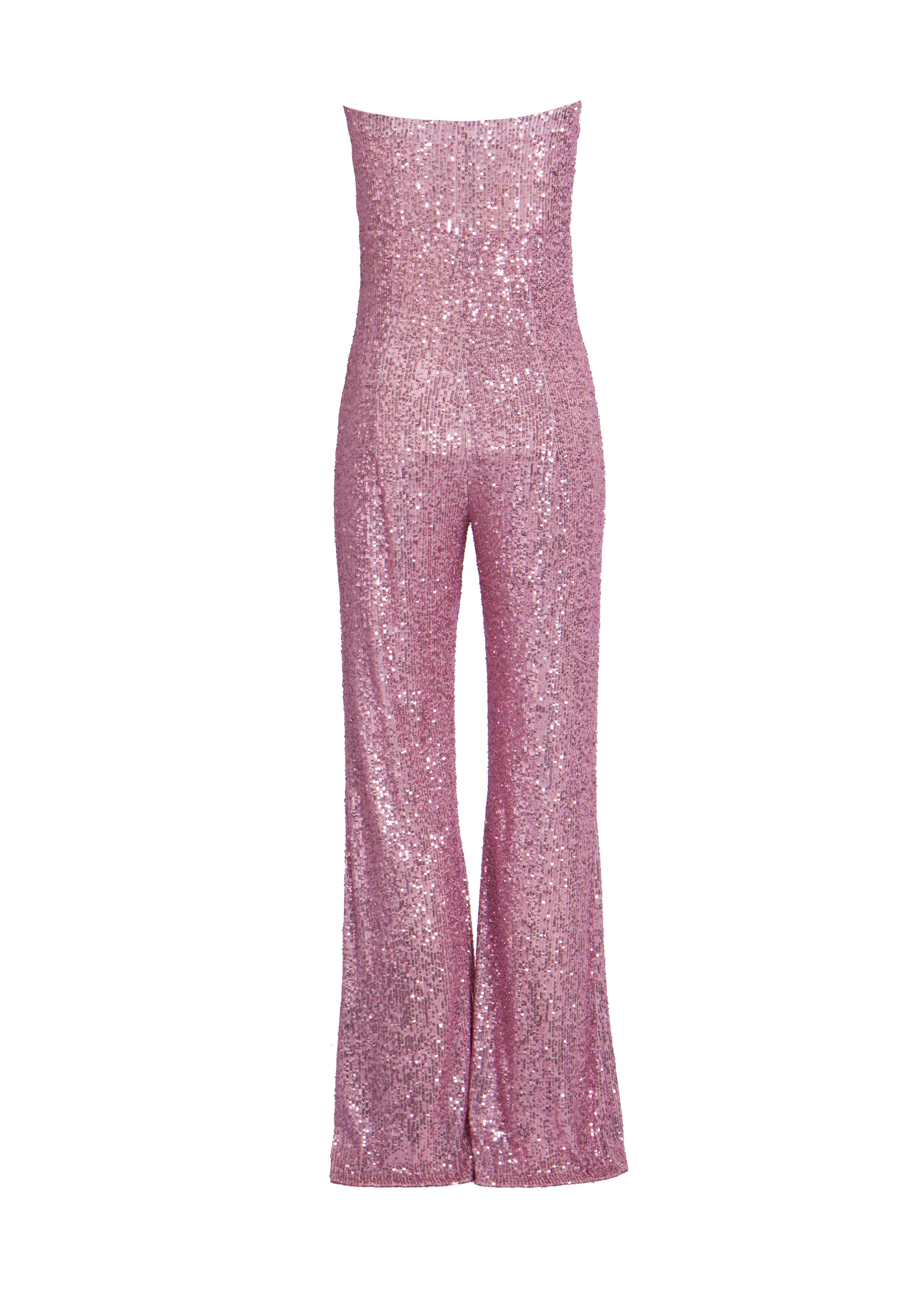 HomeShopWomenClothingJumpsuits Pink strapless sequin jumpsuit