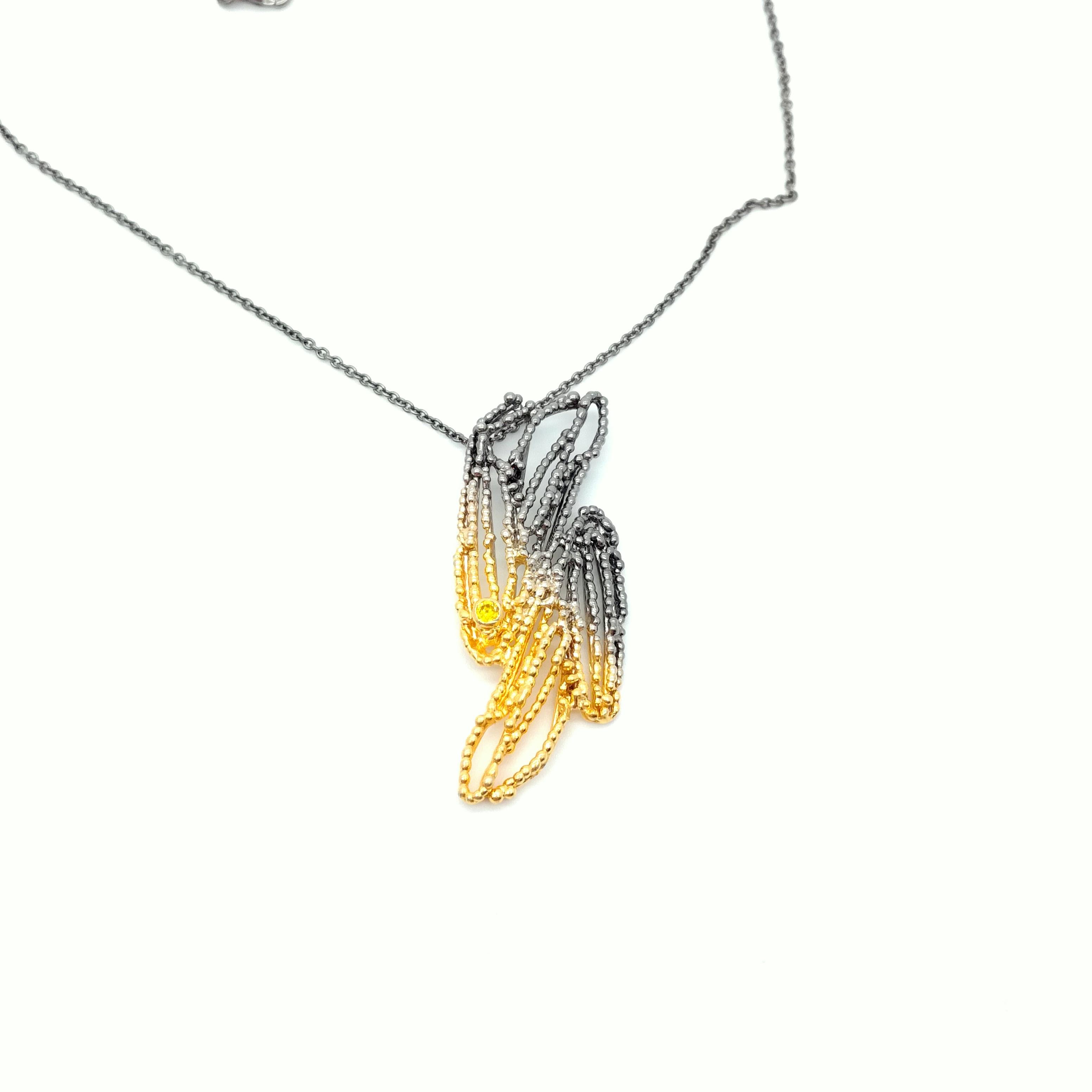 Μενταγιόν χειροποίητο από ασήμι 925 με επιχρύσωμα και μαύρη επιροδίωση και κυβικά ζιρκόνια σε κίτρινη απόχρωση