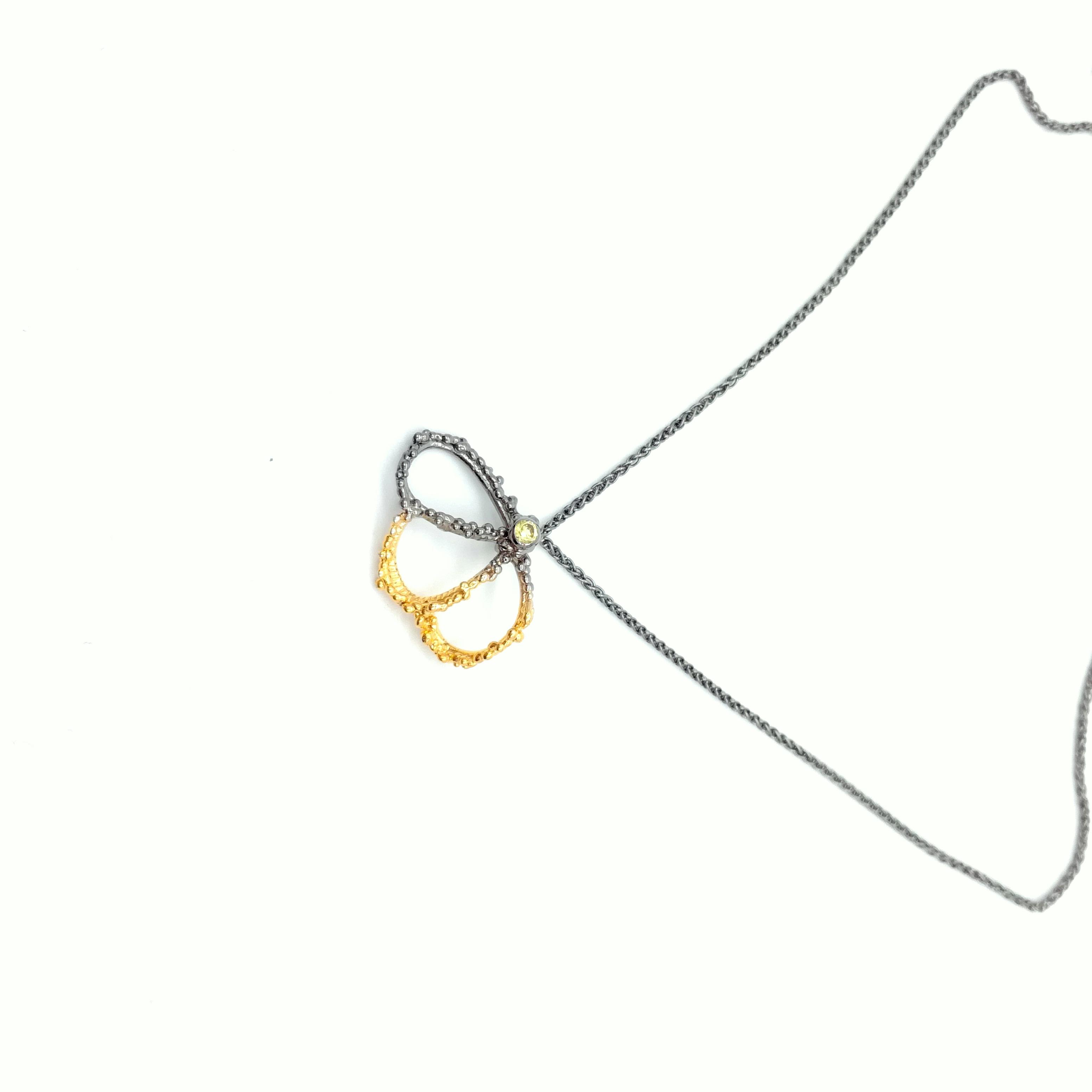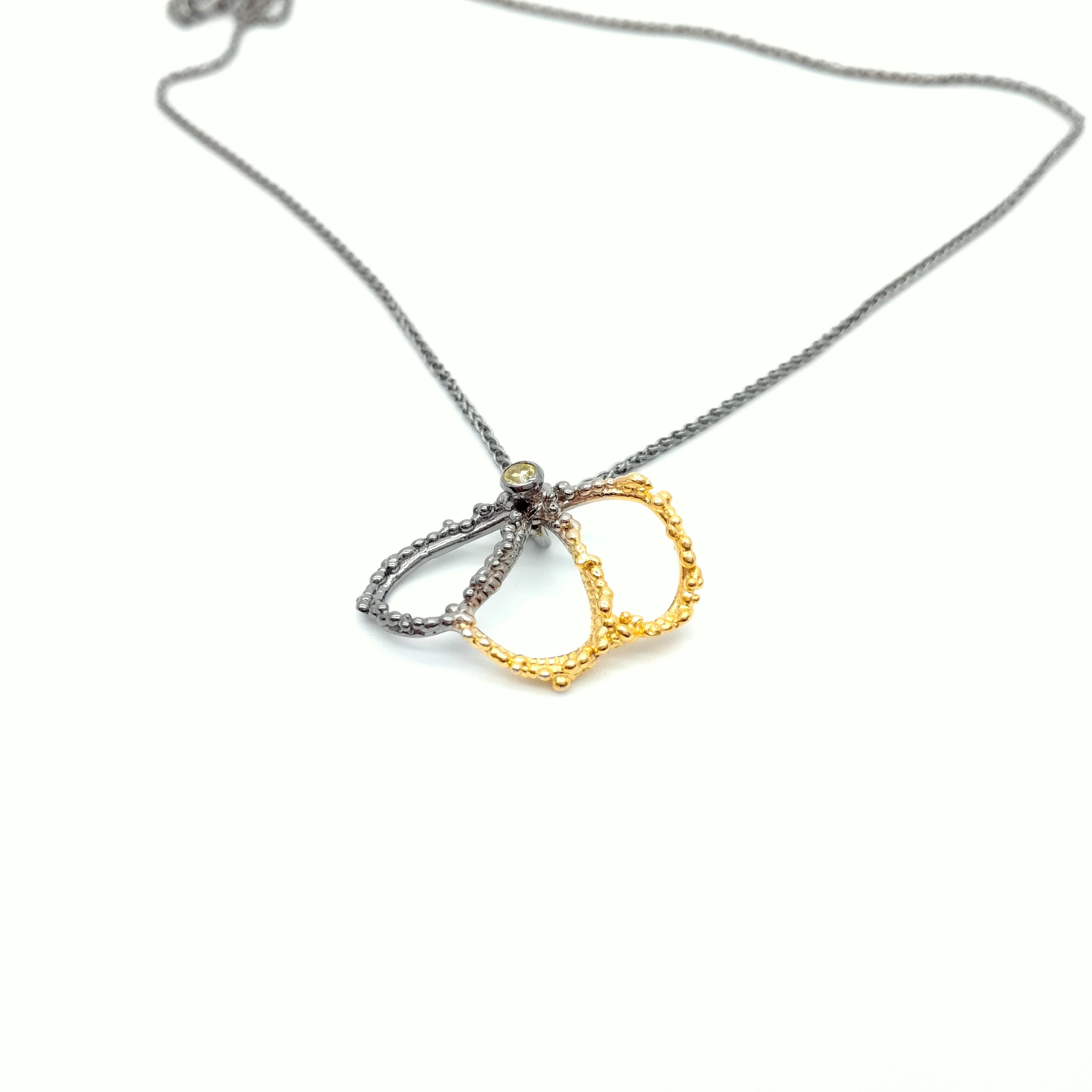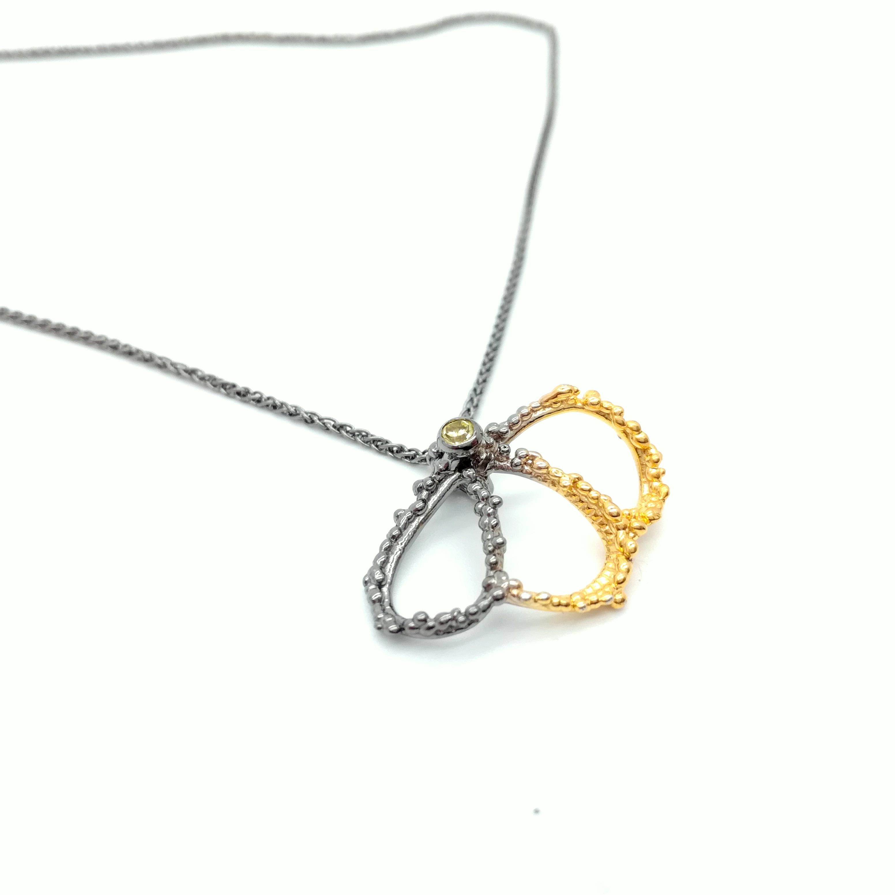 Μενταγιόν χειροποίοτο από ασήμι 925 με επιχρύσωμα και μαύρη επιροδίωση και κυβικά ζιρκόνια σε κίτρινη απόχρωση