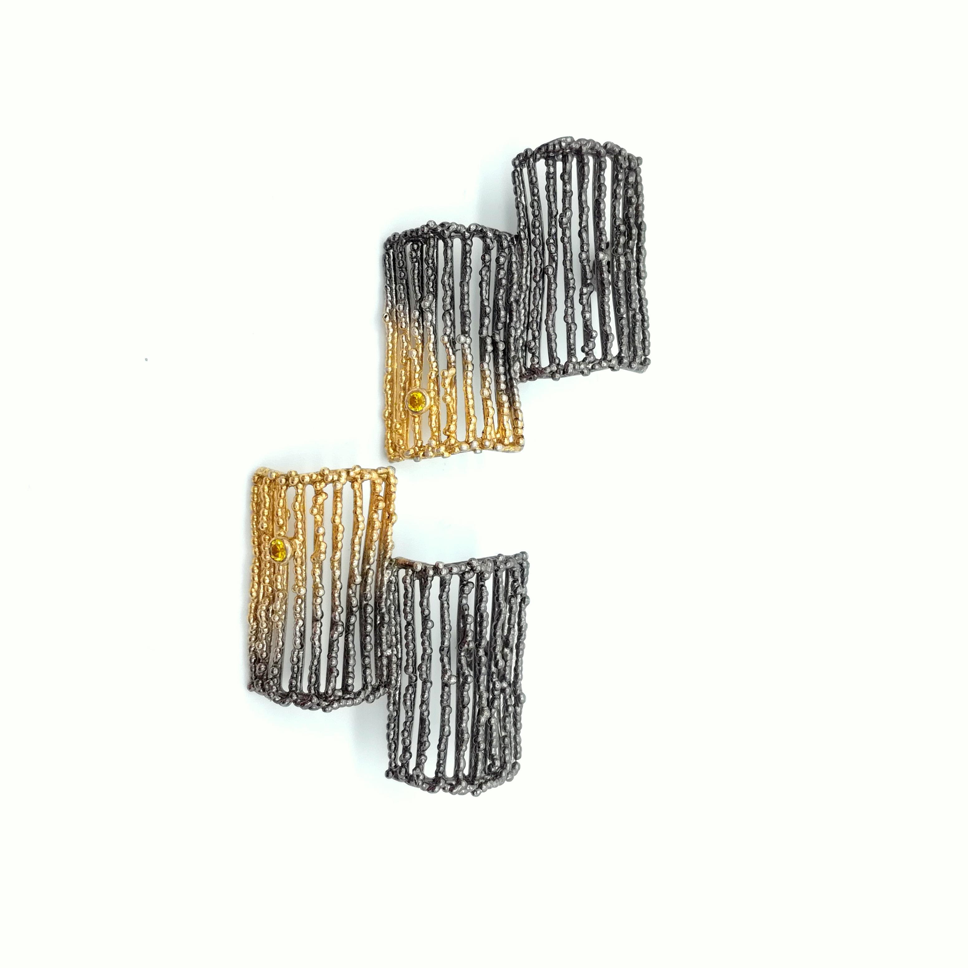 Σκουλαρίκια χειροποίητα από ασήμι 925 με επιχρύσωμα και μαύρη επιροδίωση και κυβικό ζιρκόνιο σε κίτρινη απόχρωση