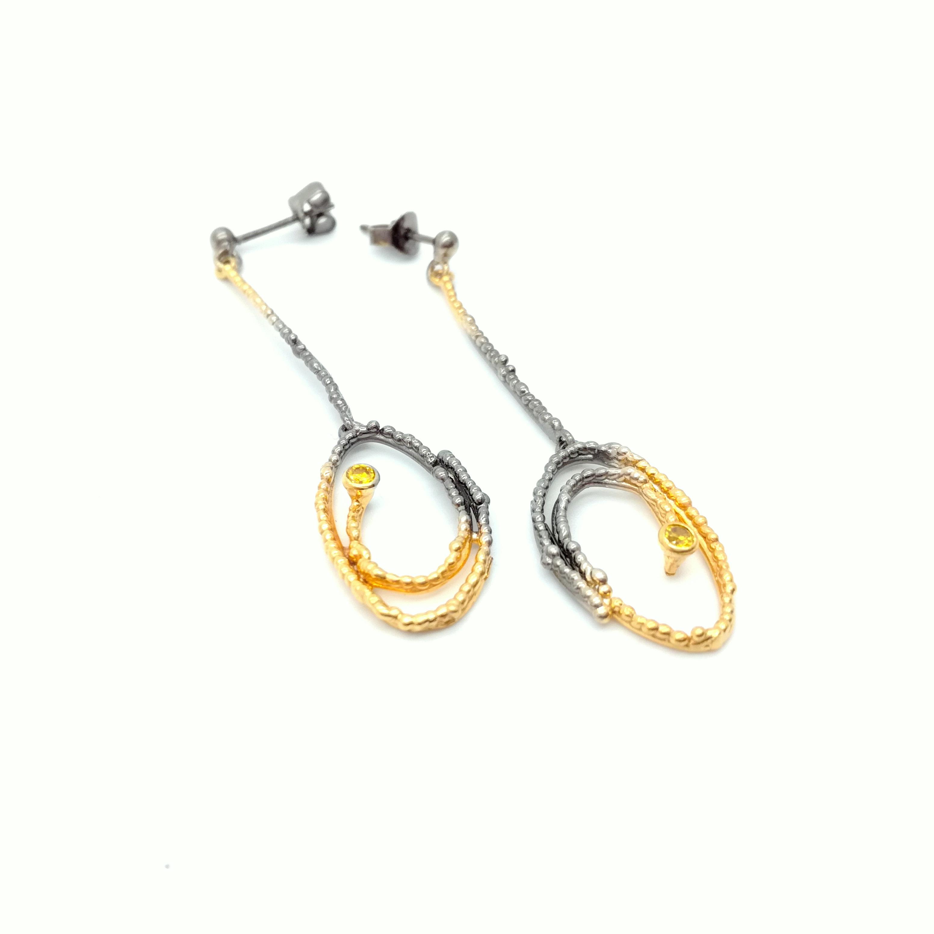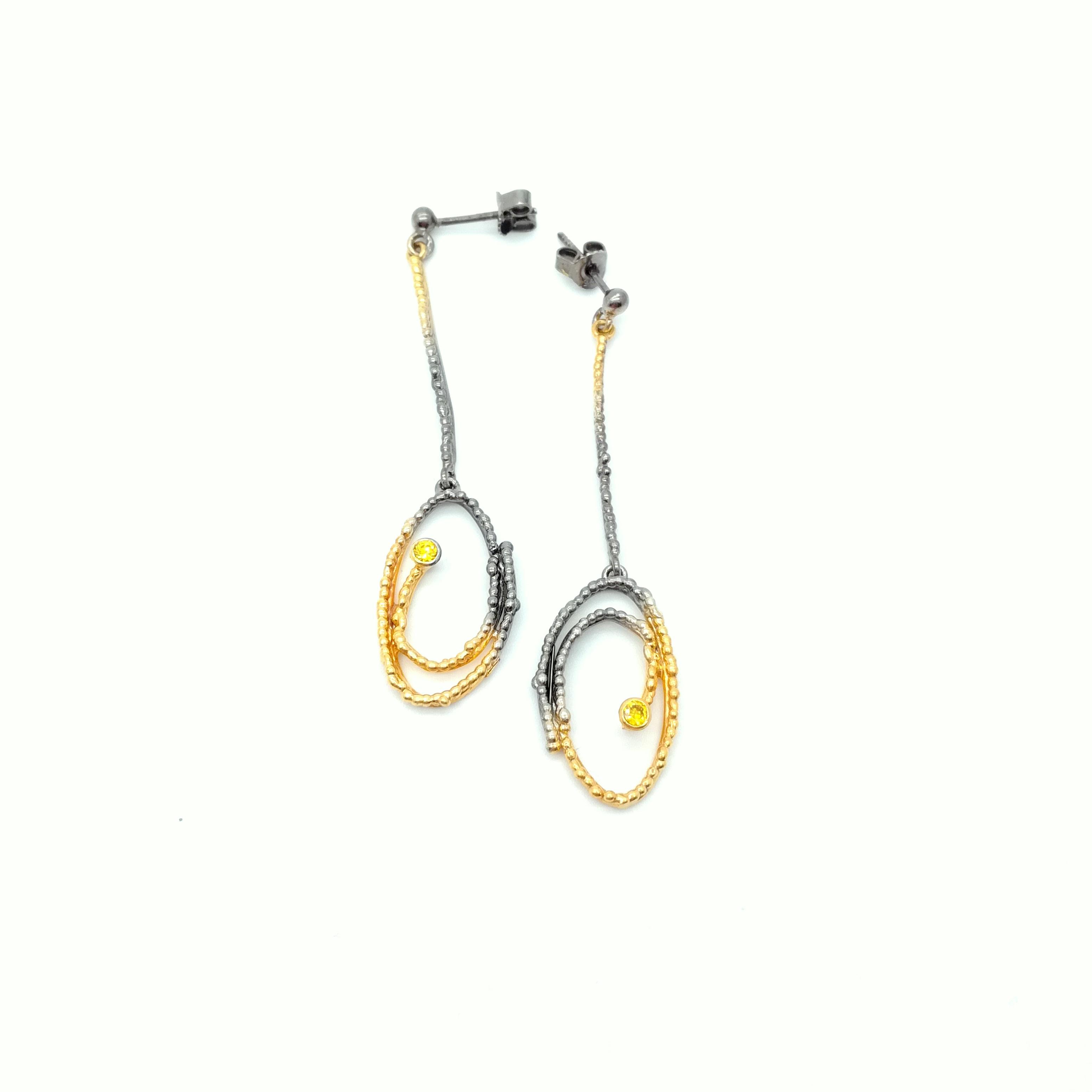 Σκουλαρίκια χειροποίητα από ασήμι 925 με επιχρύσωμα και μαύρη επιροδίωση και κυβικό ζιρκόνιο σε κίτρινη απόχρωση