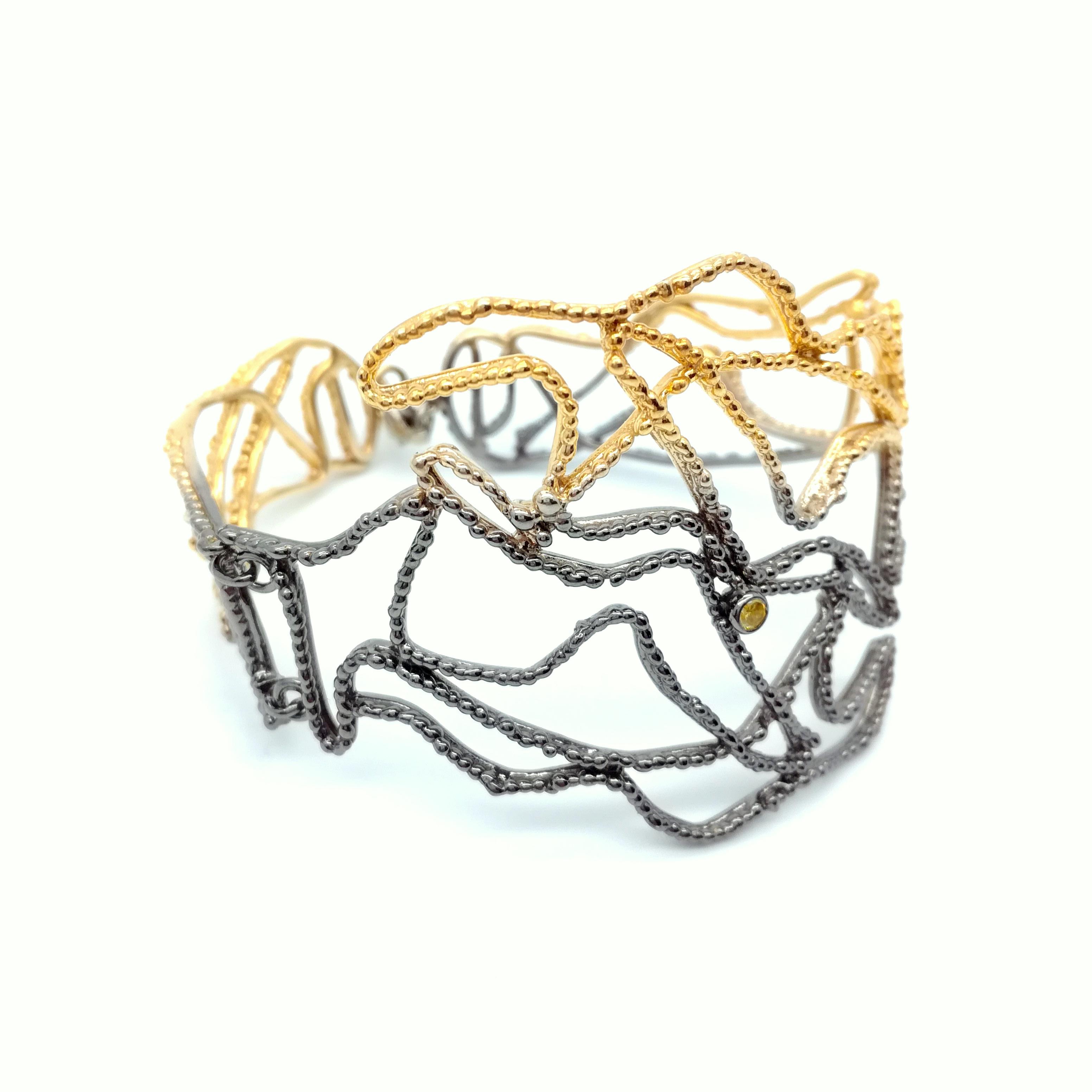 Βραχιόλι χειροποίητο από ασήμι 925 με επιχρύσωμα και μαύρη επιροδίωση και κυβικό ζιρκόνιο σε κίτρινη απόχρωση