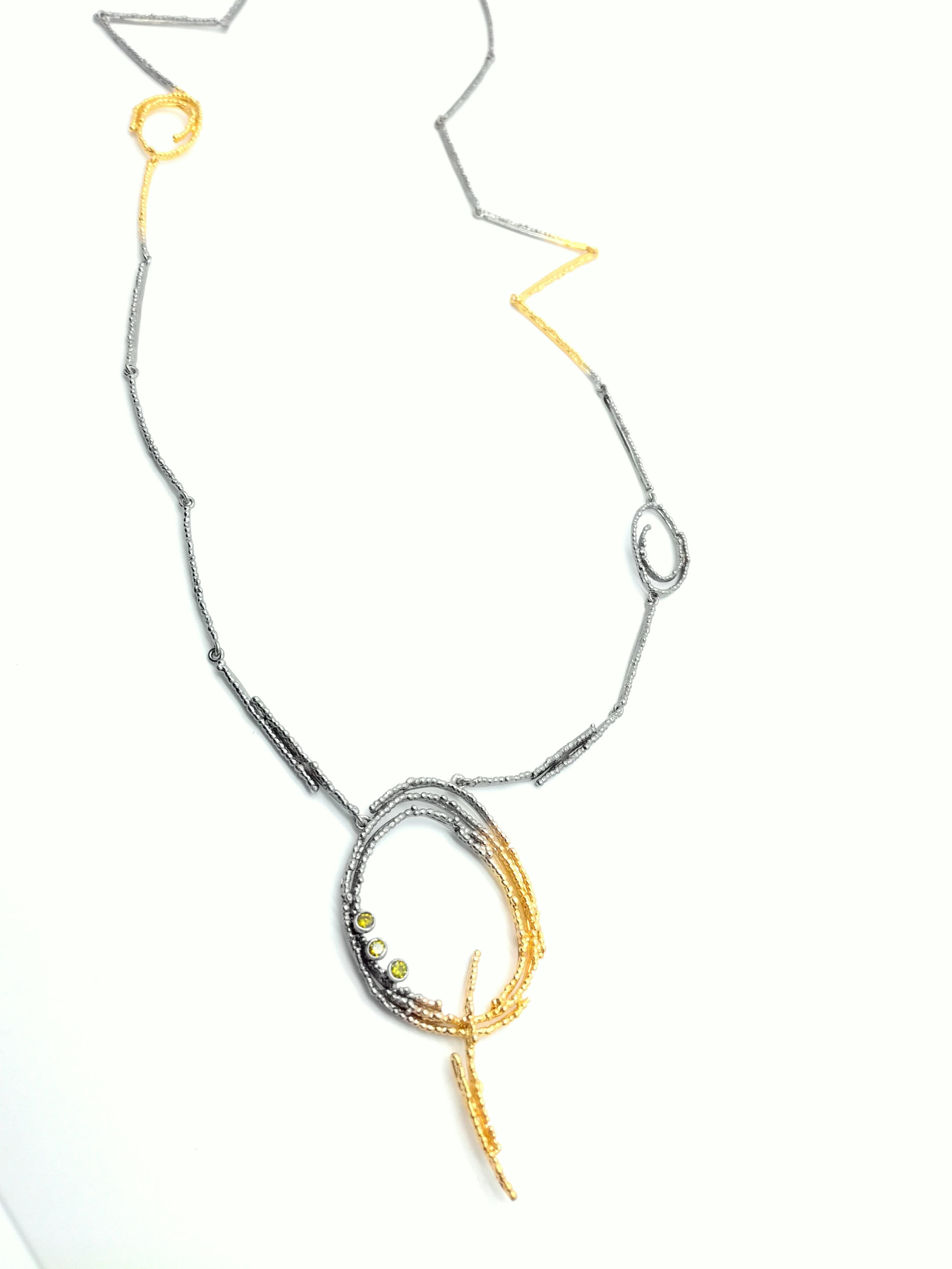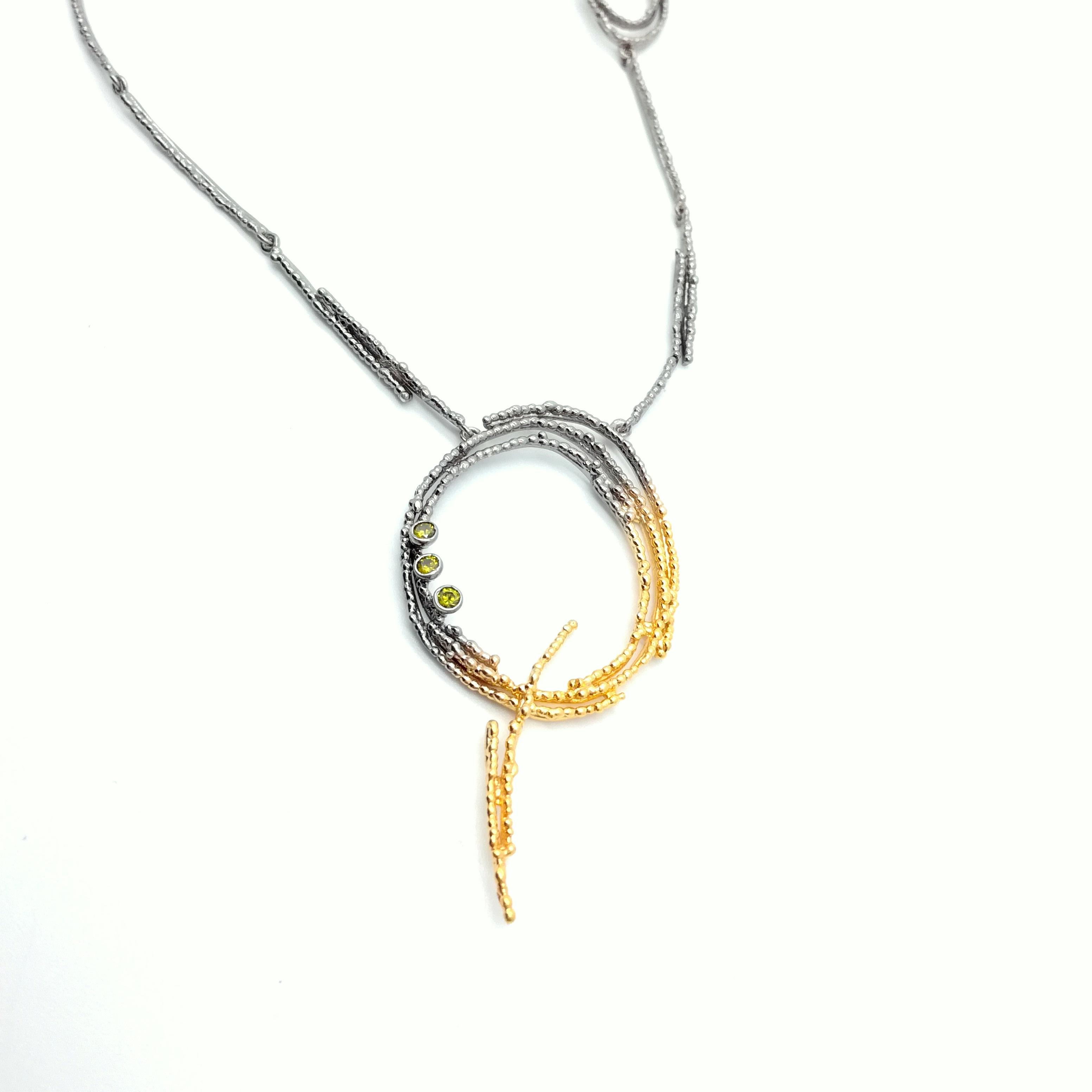 Περιδέραιο χειροποίητο από ασήμι 925 με επιχρύσωμα και μαύρη επιροδίωση και κυβικά ζιρκόνια σε κίτρινη απόχρωση